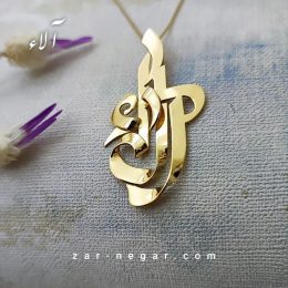 خرید پلاک طلا اسم مژگان: طراحی اثر با حروف لاتین